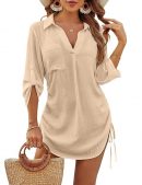 - Women’s swimwear cover ups: Shirt collar, half sleeve with button cuffs, easily dress down and up. Interesting side drawstring design, can be adjusted at will, perfect to show your sexy curves
