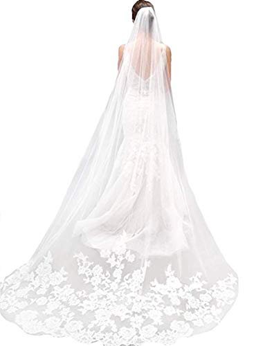 - Beautiful Christian Bridal Long 4.5 Meter Veil With Front Layer , Lace Work With Comb