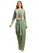 - STAND OUT FROM THE REST: Keeping in mind the latest fashion trends, this designer Kurti is made to help you make a bold fashion statement. The solid Green Dhoti Skirt And Crop Top With Short Coti dress for women’s Latest Design pattern highlights the color of your choice which is accented further.