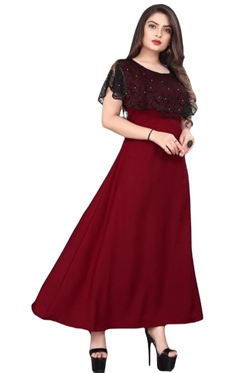 - Fabric : Crepe|| Color : Maroon ||Neck Style: Round Neck
