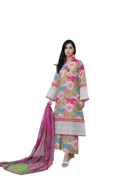 • Size : Suit 2.5 Mtrs, Chiffon Printed Duppatta 2.5 Mtrs, Embroidered Lace 2 Mtrs, Cotton Printed Salwar 2.5 Mtrs